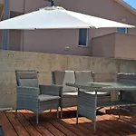 Gæsterne kan tilberede hjemmelavede måltider i et udstyret køkken. En terrasse vender ud mod havet.